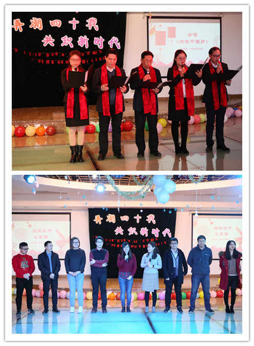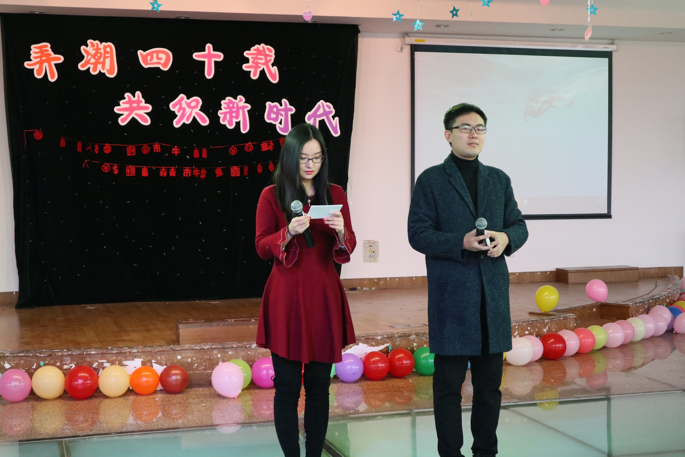 公司年终总结大会结束后,下午一点在兰笋厅举行了一年一度的公司迎新春联欢会,本次联欢会的主题是“弄潮四十载,共织新时代”。