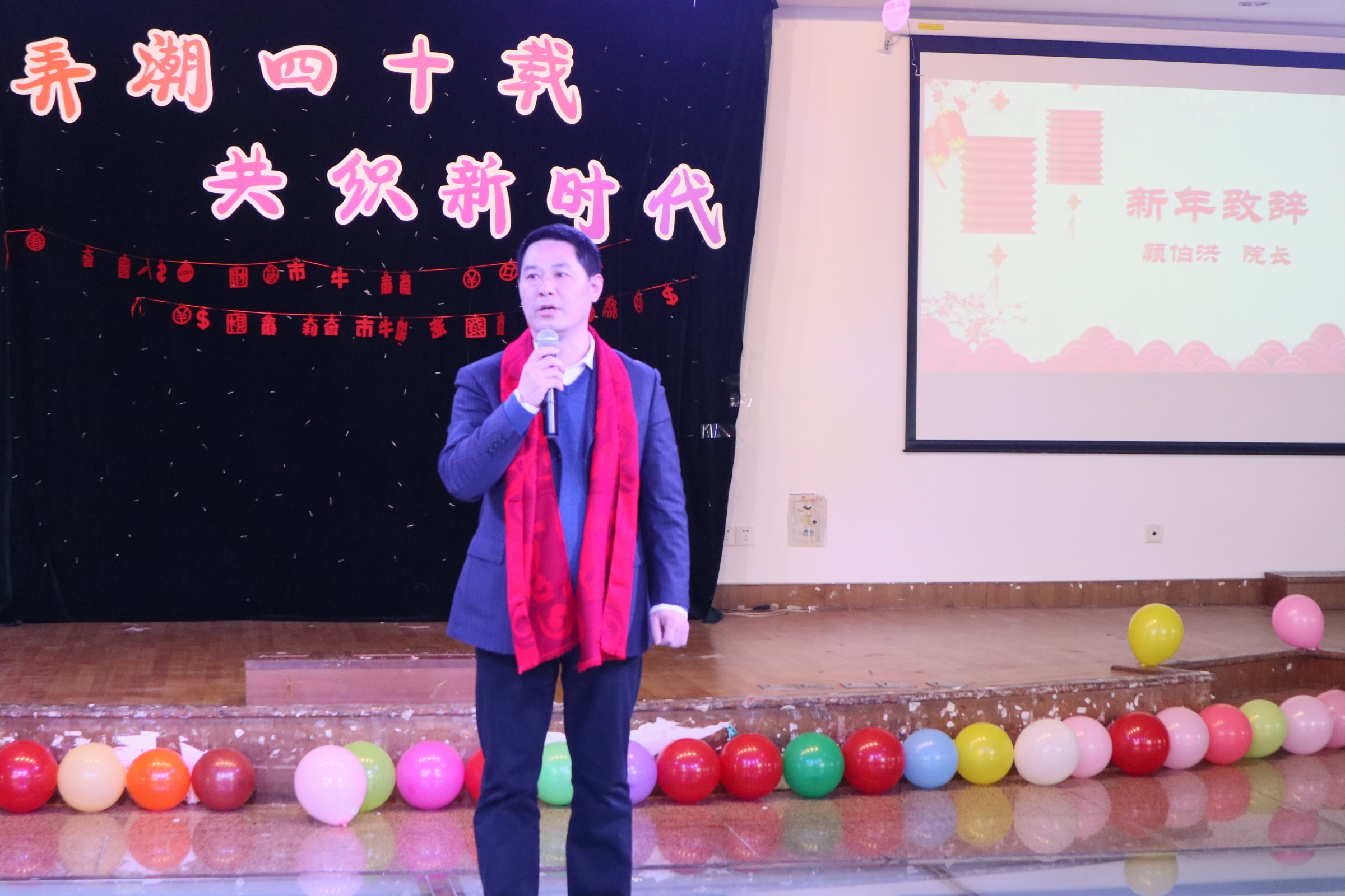 首先, 由顾伯洪经理进行新年致辞。他代表公司领导班子,对全体老师一年来的辛勤工作表示衷心感谢!并希望全院老师能够在今天的联欢会中消除一年来的疲劳,为新一年的工作做好充分准备。