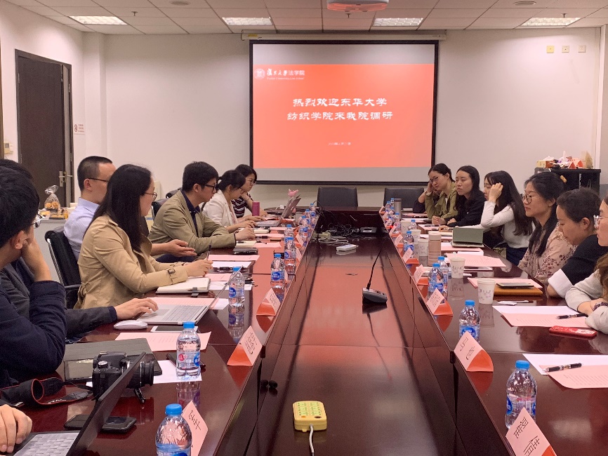 2019年4月25日,纺织公司党委副书记刘雯玮、员工工作办公室主任袁海源及专职辅导员一行11人赴复旦大学法公司调研员工工作,座谈会在复旦大学江湾校区廖凯原法学楼202室举办。