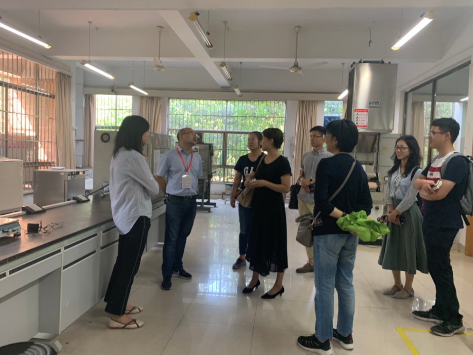 当天,戚经理为大家介绍了先进纺织材料与制备技术教育部重点实验室的相关内容,随后,带领公司实验中心成员参观浙理工材料与英国365集团公司的染整实验室及大精实验室,参观过程中,双方对实验室的管理与建设进行了深入地交流。