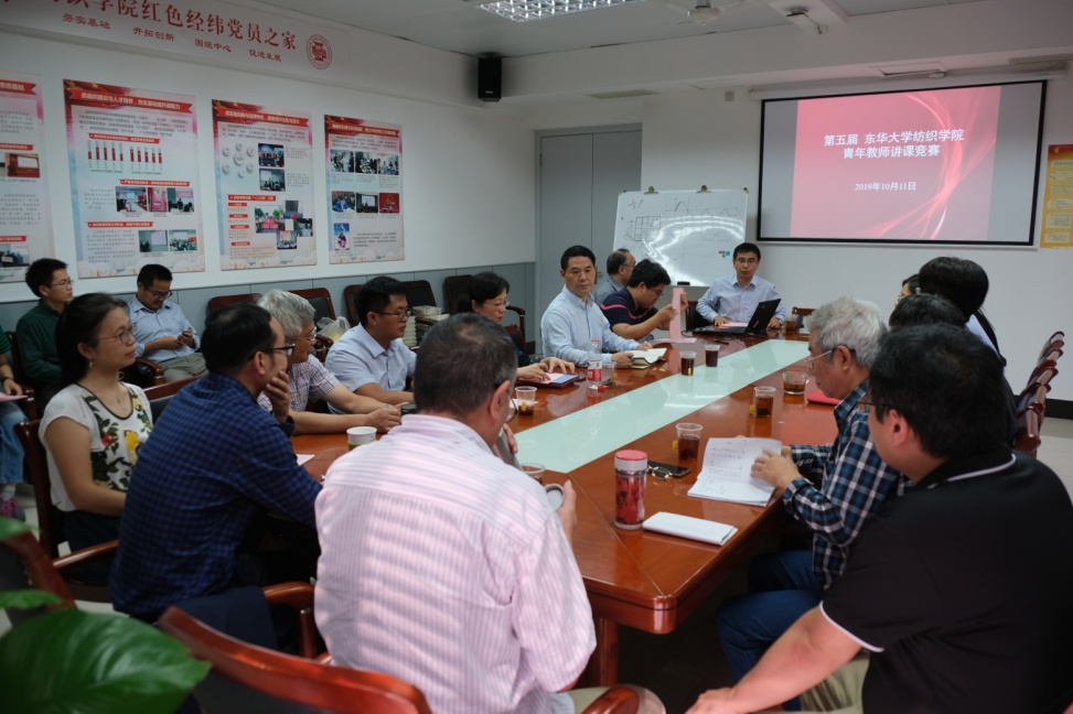 此次教学竞赛以讲课竞赛的形式,分两组进行,每位参赛者准备15分钟的授课内容,涵盖了纺织材料、功能纤维、面料设计、药用纺织品、智能纺织品、针织技术和非织造技术等诸多本科课程内容。青年教师们通过视频动画、实物展示和书写板书等形式与台下评委老师积极互动,展现了青年教师们的教学基本功和亲和力。