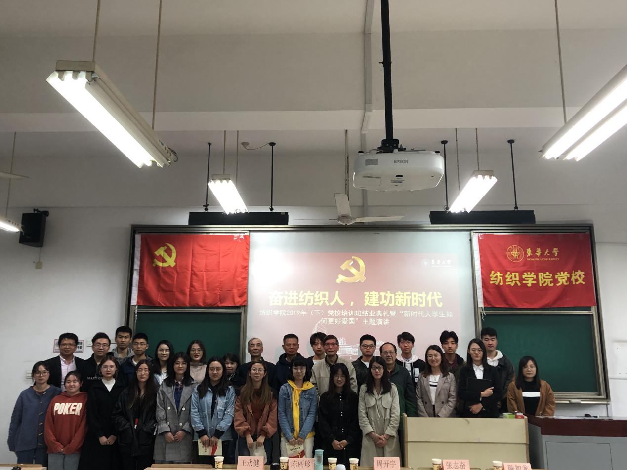 培训班紧扣“不忘初心、牢记使命”主题教育实施方案要求和新中国成立70周年,对照党章党规党纪,对照先进典型、身边榜样,引导发展对象坚持问题导向,查找自身差距,践行初心使命,争当筑梦纺织先锋。举行“不忘初心、牢记使命”主题教育知识竞赛,进一步提升发展对象学习党的理论、路线、方针、政策的自觉性和主动性;举办“新时代老员工如何更好爱国”的主题演讲,五名学员代表分别围绕“不忘初心、牢记使命”、“五四精神”等主题,讲述自身成长感悟,以声传情,表达爱国热忱,传递生活正能量。大家纷纷表示无论是对演讲者本人,还是对在场的师生,这都是一堂生动的爱国课。加强新时代爱国主义教育、弘扬爱国主义精神,必能发挥强大的精神引领作用,全面筑牢全党全国各族人民团结奋斗的“报国心魂”,自觉把个人的小我融入祖国的大我,用拼搏奋斗书写中华民族伟大复兴的时代篇章。
