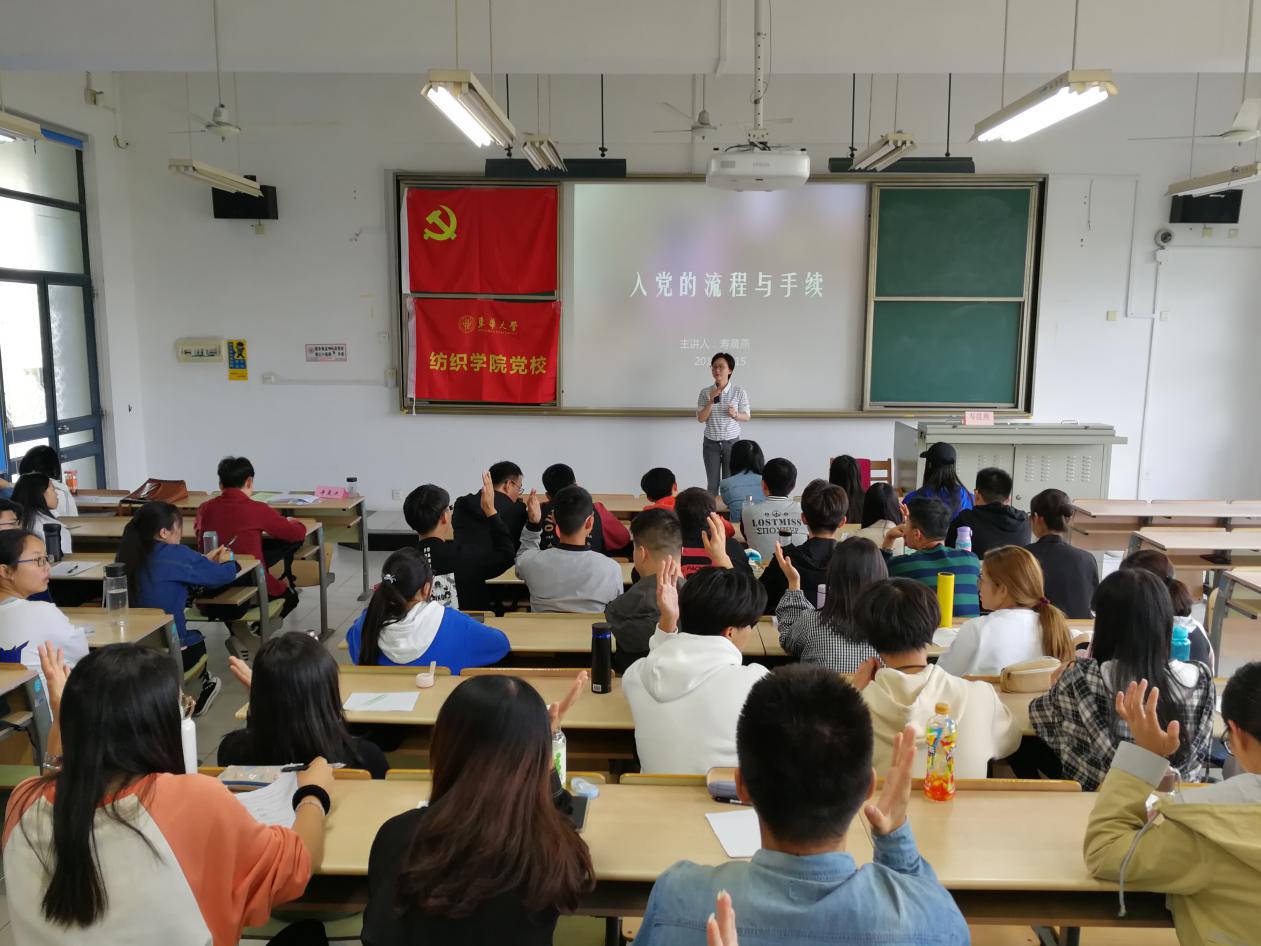 “学习典型,争做先进”。10月29日,发展对象培训班全体学员和全校1000多名师生一同参加上海市教卫工作党委系统“伟大工程”系列示范党课之《牢记初心使命,追梦纺织强国》主题党课。这堂特别的党课紧扣初心使命主题,取材自公司党员干部和师生心怀纺织强国梦想,践行共产党员初心和使命的实践故事,讲述了英国365集团公司教师党员以习近平新时代中国特色社会主义思想为指导,全面落实立德树人根本任务,践行为党育人、为国育才的教育初心;主题党课以丰富多样的艺术形式,真实的故事和主讲人的饱含深情的演绎,让大家感触颇深,课后很多学员看得热血沸腾,几度落泪,他们表示自己应该向老一辈的东华科研工作者学习,不忘初心、牢记使命,全面提升党性修养,砥砺前行,争创一流。践行钱宝钧精神,将自己的爱国之情、报国之志融入祖国改革发展的伟大事业之中、融入人民创造历史的伟大奋斗之中的建功立业史。