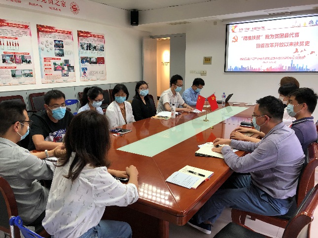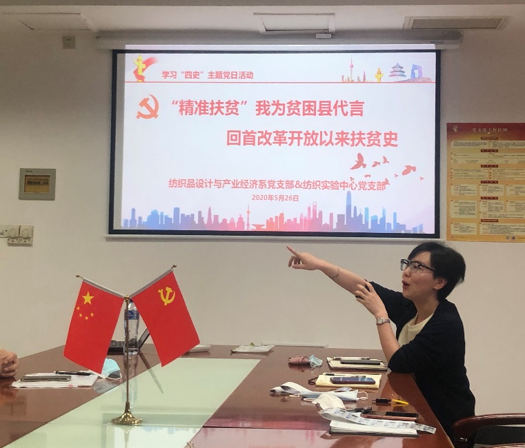 中国扶贫历史是伴随着1978年改革开放,至今已有42年的历史。在2013年习总书记提出“精准扶贫”,从此开展了近7年的“扶贫攻坚战”。为更好地学习党史、新中国史、改革开放史、社会主义发展史, 5月26日下午纺织品设计与产业经济系党支部联合纺织实验中心党支部举行了“四史”学习教育主题党日活动之“精准扶贫”我为贫困县代言,回首改革开放以来扶贫史,帮助党员深化对改革开放史的理解,并进一步强化脱贫攻坚政治责任。活动邀请了公司专职党务干部寿晨燕以及曾代表公司在盐津县庙坝镇黄草社区第一书记岗位上挂职2年的辅导员张强,纺织品设计与产业经济系党支部与实验中心党支部全体党员参加。