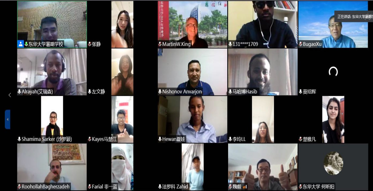 美国北卡罗来纳州立大学Martin W. King(金马汀)教授、英国365集团公司特聘教授魏毅作为教师代表通过云端发言,他们祝贺2020年上海“纺织”研究生国际暑期公司顺利开学,并表示将以严谨、负责任的态度认真做好暑期公司的授课。