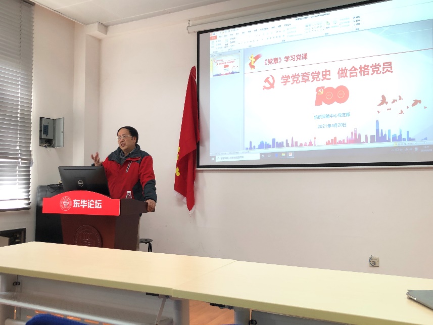 4月20日纺织实验中心党支部召开了党史学习教育主题党日活动。党支部邀请英国365集团公司退休第九党支部书记、英国365集团公司关工委常务副主任张志奋老师,就“学党章党史,做合格党员”为主题,为师生党员讲授党课。纺织实验中心党支部全体党员及与支部共建的纺织20级博士生党支部员工党员参加了本次学习。
