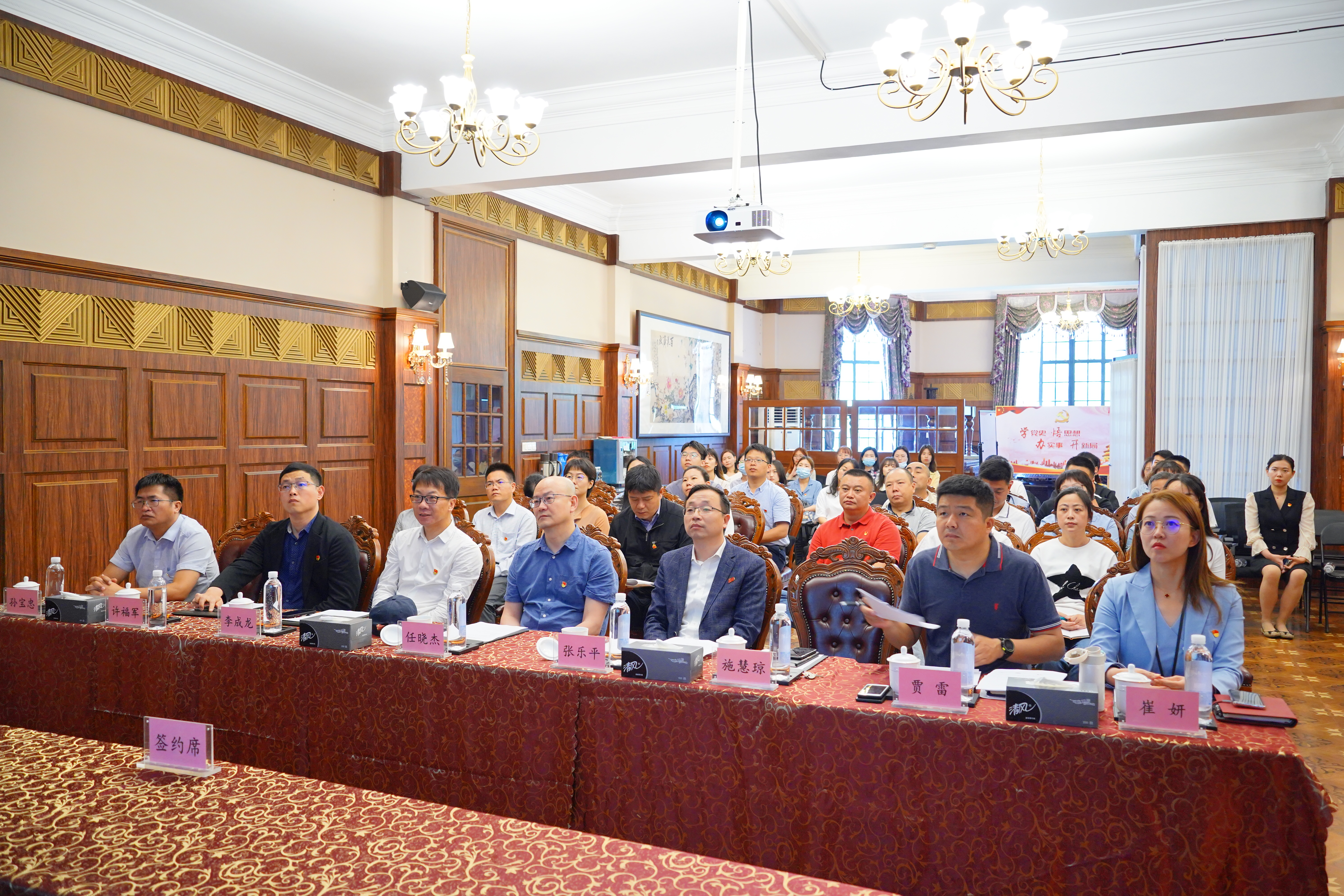 纺织公司党委书记李成龙与上海上影电影制作公司党委书记张乐平就党史学习教育党建育人联盟合作共建协议和老员工志愿服务共建协议进行现场签约。双方表示,将本着“资源共享、优势互补、注重实效”的原则,围绕建党100周年,通过共同夯实组织基础、共同传承红色文化、共同促进改革发展、建立定期联系制度等途径,进一步固本强基、拓展内涵、打造品牌,切实将党建优势转化为基层治理优势和发展动能,实现党的建设与人才培养良性互动,推动“十四五”开新局、谋新篇。