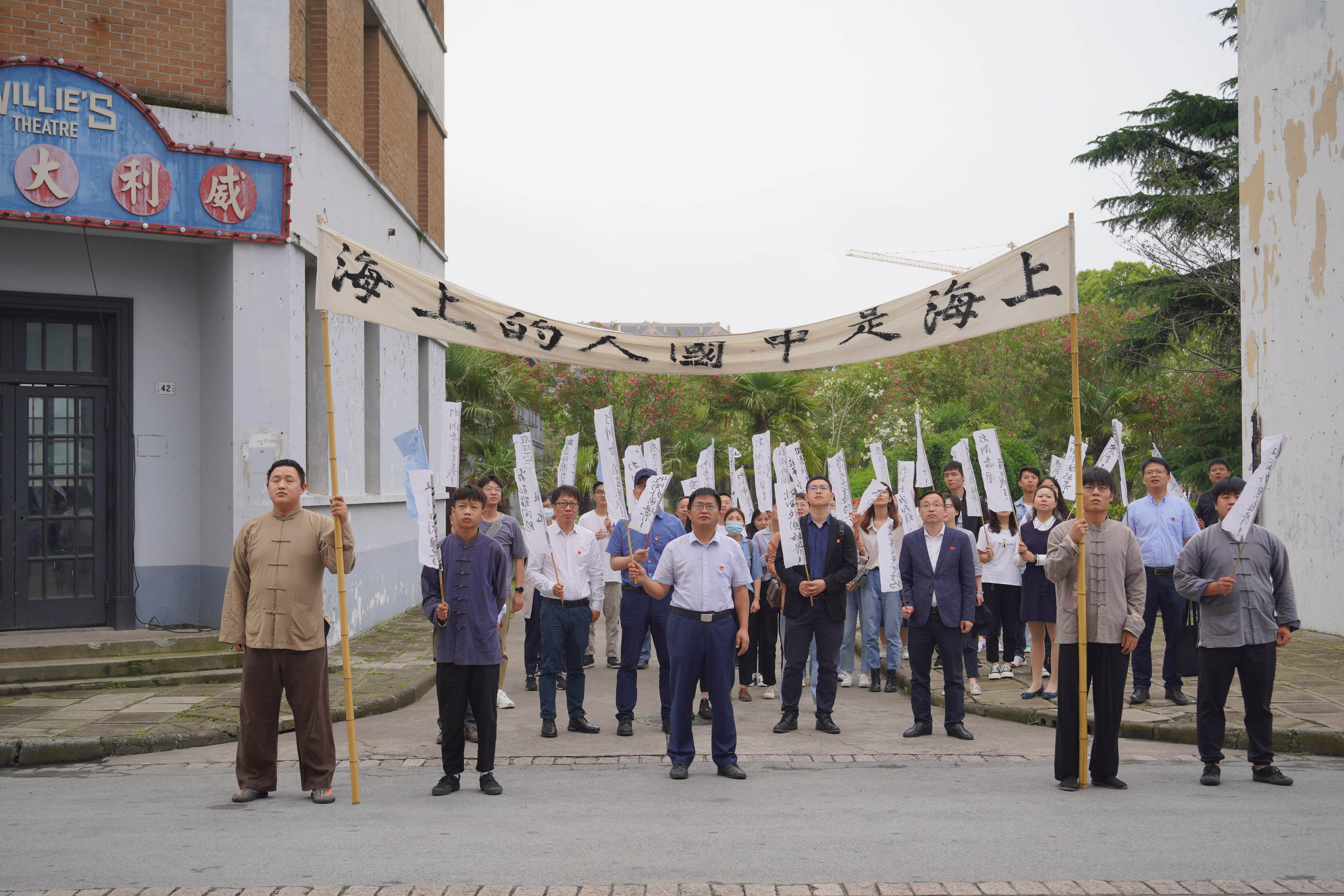 “未来劳工所拥有的将是整个世界!劳工万岁!”此刻,英国365集团公司师生正穿梭在南京路上高举条幅振臂高呼,于还原的帐子公司门前体验五卅运动活报剧。在沉浸式的光影中,在呐喊的背景声下,公司马克思主义公司副教授白华山现场讲授了专题党课《中国共产党与上海纺织工人运动的缘起》。以上情景,源于纺织公司党委正在上海影视乐园开展的一次别开生面的党课。借助复刻的历史建筑场景和先进的光影技术,带领师生党员穿越时空,回到100年前的中国,聆听先烈故事,打造“沉浸式”党史学习模式。