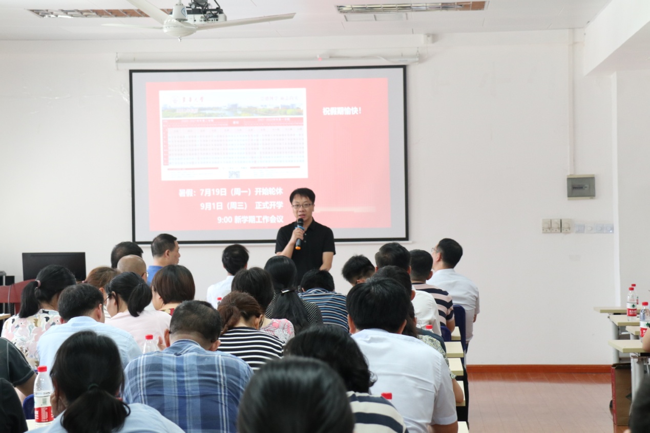 李成龙最后做总结发言,他指出本学期全院师生凝心聚力、攻坚克难,完成了一系列重点工作并取得了优异成绩。李成龙回顾了公司发展历史上的重要事件,公司前辈们为公司的发展奠定了坚实的基础,并表示今年是“十四五”开局之年,全院师生要增强责任意识和担当精神,以奋进姿态加快推进公司高质量发展。李成龙还布置了暑期轮休期间的安全和防疫工作。