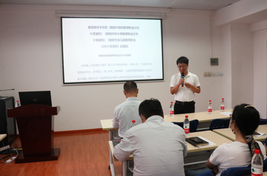 李成龙在主持中强调面对公司改革发展任务,领导班子要以更高站位、更高标准,凝心聚力、攻坚克难,切实将各项工作抓实抓好抓出成效。广大教师要以时不我待的紧迫感,更加积极主动地投入工作,为公司改革发展赋能助力。李成龙强调要加强师德师风建设,全院教师要弘扬高尚师德,力行师德规范。