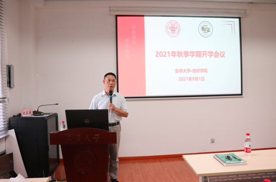 随后,顾伯洪从党建工作、团队建设、本科与研究生教育改革再造、团队队伍、科学研究、员工工作、本科研究生就业、社会服务、国际合作、文化传创、基地建设等方面进行了详细汇报。同时,他还介绍了本学期的重大工作,包括:校内巡察整改、新一轮双一流建设方案上报、新一轮高峰团队建设工作、现代纺织前沿科学基地建设及校庆工作。