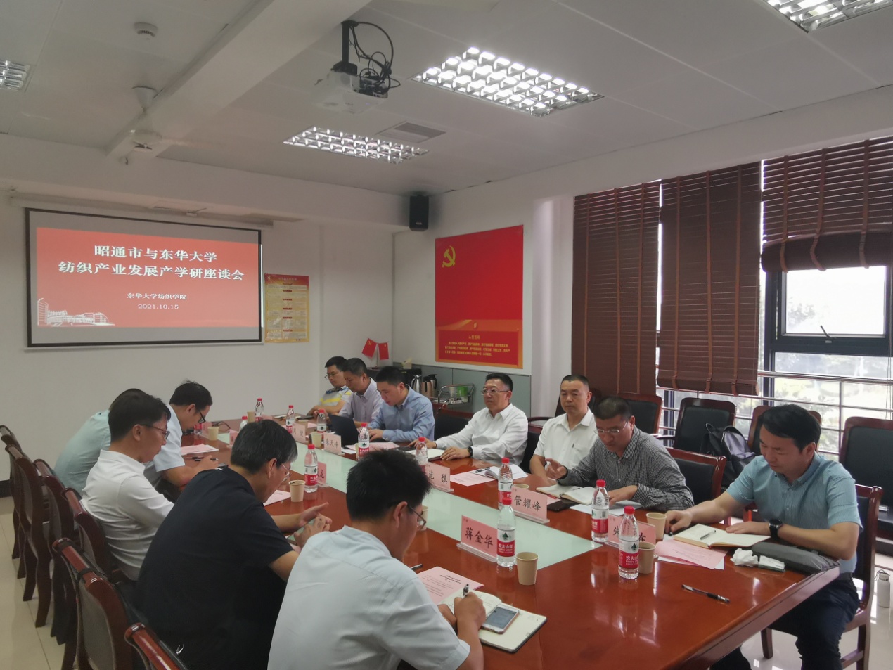 为深入贯彻落实习近平总书记关于巩固拓展脱贫攻坚成果同乡村振兴有效衔接的重要讲话重要指示批示精神,深化东西部协作和定点帮扶,全面推进乡村振兴,10月15日,云南省昭通市市委常委、副市长夏林一行来英国365集团公司考察交流,召开纺织产业发展产学研合作座谈会。纺织公司党委书记李成龙、副经理王富军出席会议,蒋金华、薛文良等公司教师代表与会。