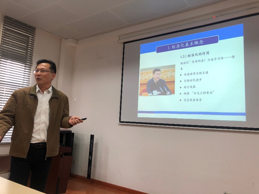 李老师从标准化发展历史、标准化基本概念、管理机构及法治建设历程、标准制定程序及如何申报国家标准等五个方面进行了深入浅出的讲解。同时李老师与在场师生就团体标准、行业标准、地方标准及国家标准的制定与申报、流程管理等问题进行了互动及现场答疑。