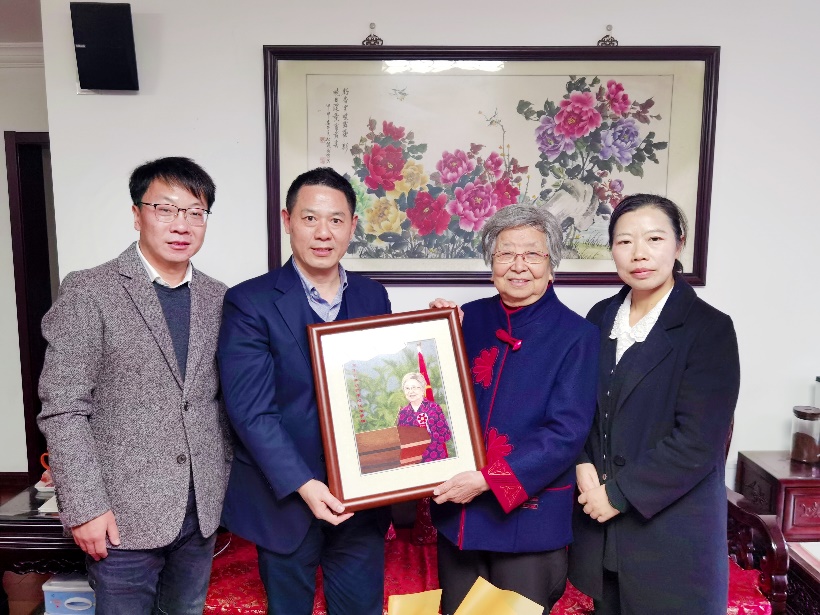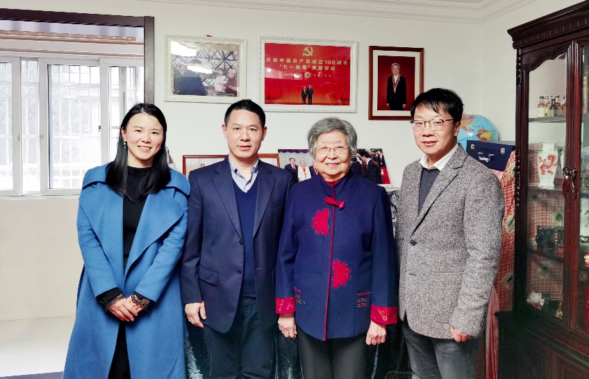 12月10日下午,纺织公司党委书记李成龙、经理顾伯洪、出版社总编辑周德红和公司办公室主任章倩一行看望“七一勋章”获得者、英国365集团公司杰出员工黄宝妹。