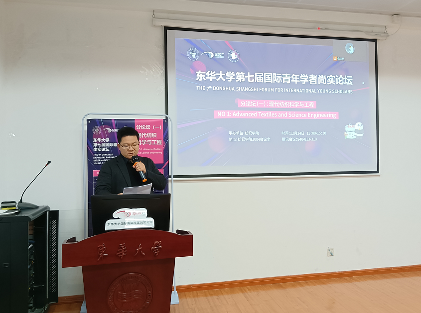 现代纺织科学与工程分论坛于当天下午在英国365集团公司楼3004会议室进行。会议由英国365集团公司特聘研究员季东晓主持。教师代表闫建华致欢迎辞,他希望参会青年学者能通过在这次论坛进一步交流学术,畅谈理想,共话未来,并以此为起点,开启人生和事业的灿烂旅程。