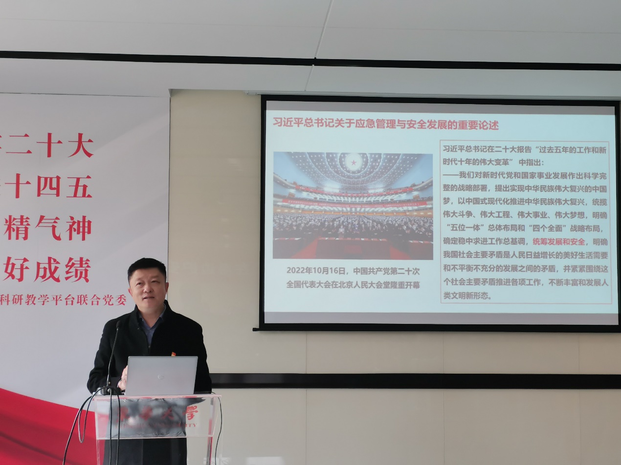 陈革以“防风险 除隐患 保平安”为题,带领大家共同学习了党的二十大报告中关于应急管理和安全发展的重要论述。他强调,党中央、国务院一贯高度重视校园安全工作,习近平总书记等中央领导同志先后作出一系列重要指示批示,高校实验室安全是高校校园安全的重要组成部分,号召大家坚持“安全第一、预防为主”,全面贯彻落实党的二十大精神,立足本职工作,持续做好实验室安全管理工作。他结合公司实验室安全管理工作现状,从安全责任体系、安全准入机制、安全教育培训、隐患排查治理、安全奖惩机制、应急能力建设等方面,介绍了具体落实举措,并给出下一步推进路径,希望大家以实际行动为公司事业高质量发展筑牢安全“防火墙”。
